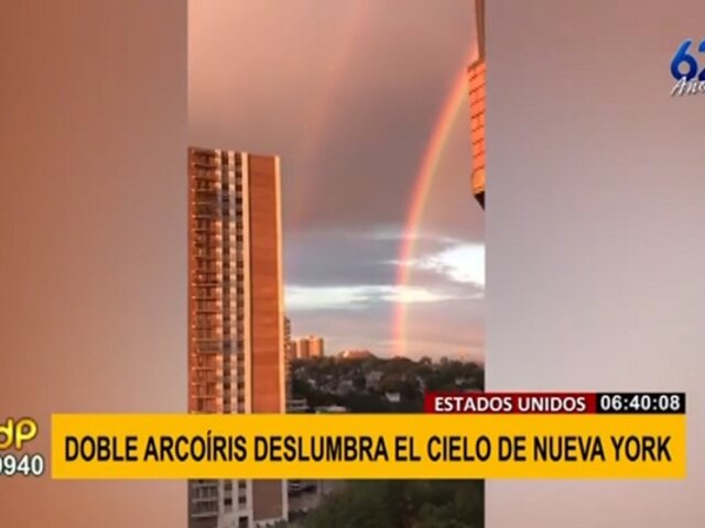 Residentes de Nueva York se deslumbraron con un doble arcoíris, que apareció después de un día muy nublado y lluvioso.