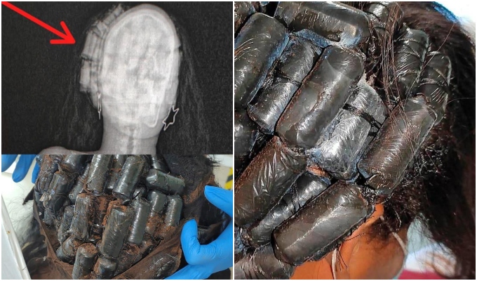 Al notar que había algo sospechoso en el peinado de la mujer, las autoridades la pasaron por el escáner y detectaron que, entre su cabello, había algunos alijos pequeños, así que se dispusieron a revisarle el cabello.