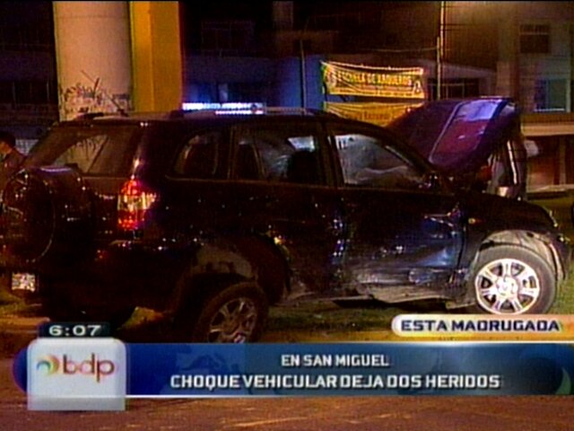 Esta madrugada, dos sujetos resultaron heridos luego de impactar su vehículo contra un poste en el cruce de las avenidas Faucett con Próceres en el distrito de San Miguel. Buenos Días Perú.