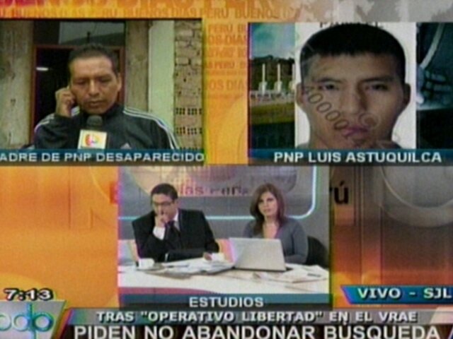 Desde San Juan de Lurigancho, los padres del suboficial de tercera Luis Alfredo Astuquilca Vásquez, reiteraron a las autoridades no cesar con la búsqueda de su hijo, desaparecido tras el ataque del último jueves a un helicóptero en el VRAE.