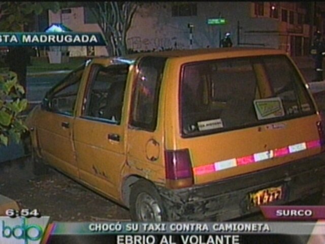 Esta madrugada, el taxista Carlos Valdés Reyes, en aparente estado de ebriedad, casi origina una tragedia luego de impactar su tico contra una moderna camioneta en el distrito limeño de Surco.