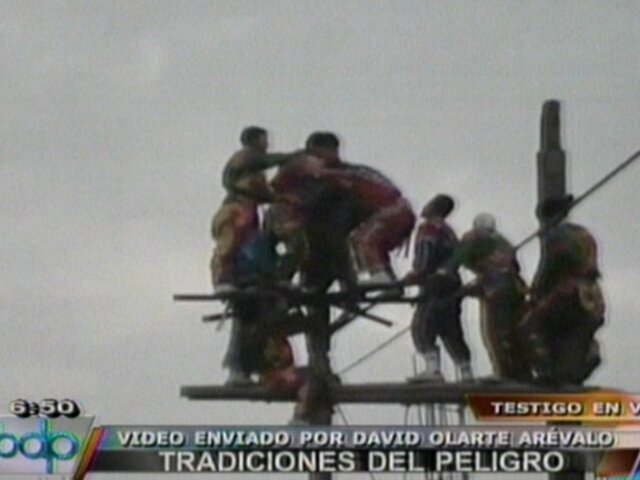 En las imágenes enviadas por nuestro televidente David Olarte Arévalo se aprecia como un grupo de personas realizan actividades verdaderamente extremas. En ella arman una torre humana sobre un poste y en ocasiones utilizan a menores de edad.