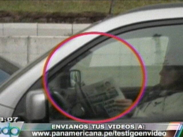 En las imágenes enviadas por nuestro televidente Jacques Mendieta Reyes se aprecia a la conductora muy entretenida en su lectura, mientras manejaba en plena Vía Expresa de Paseo de la República.