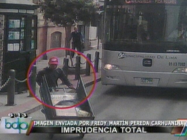 Carretillero cruza de manera impudente carril del Metropolitano