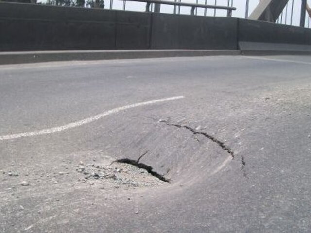 En tres días estaría reparada la capa asfáltica que se hundió en el puente de ingreso hacia la Plaza Unión, por la filtración del agua de una tubería rota.