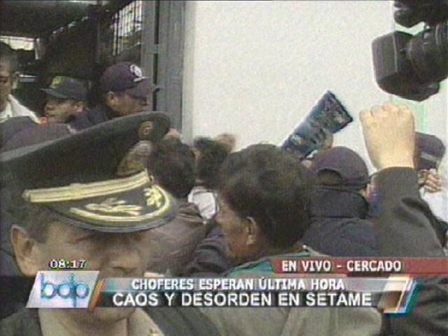 Los taxistas pugnan por ingresar a las instalaciones del Setame para ser empadronados, esto ha generado que la policía junto con los serenos formen una cadena humana alrededor de la puerta de ingreso, para evitar una avalancha humana. Por su parte los vecinos siguen quejándose de los desperdicios que dejan en la cola los centenares de taxistas.