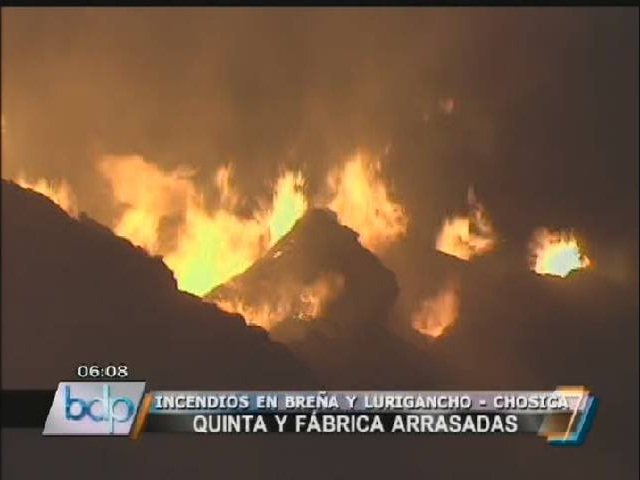 Más de 1500 fardos de algodón fueron consumidos por el fuego en un inmenso almacén clandestino provocado por una bombarda que cayó a dicho lugar. Por otro lado, en Breña un incendio arrasó con las siete viviendas de una quinta del Jr. Jorge Chávez.