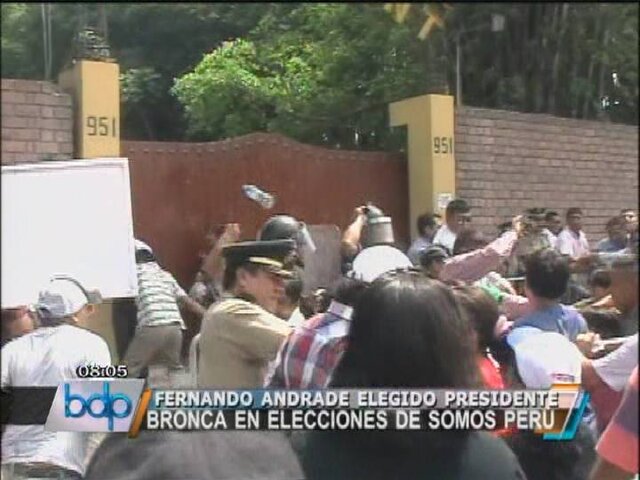 Las elecciones en el partido Somos Perú estuvieron cargadas de peleas e insultos. Prácticamente se convirtió en una batalla campal donde Fernando Andrade fue reelegido como presidente. Incluso un equipo de Buenos Días Perú fue agredido por los asistentes.
