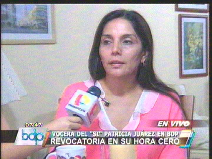 La promotora del Sí, sostuvo que la gestión de Susana Villarán está plagada de errores y nuevamente calificó a la burgomaestre como incapaz. Además, consideró que las acusaciones contra su hija son una infamia. También, aseguró que respetarán los resultados del domingo. Finalmente, reveló que votará por el “No” en el casillero de su esposo y regidor, José Danos.