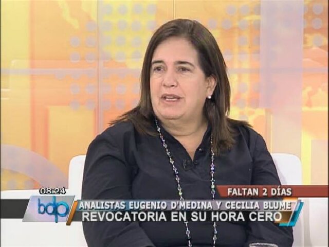 Según la analista, el municipio capitalino paró de dar licencias y autorizaciones hasta que pase el proceso de revocatoria. Agregó que si Susana Villarán es revocada no se sabrá quién tomará el sillón municipal. Finalmente dijo que la revocatoria es una mala institución y debe ser abolida.
