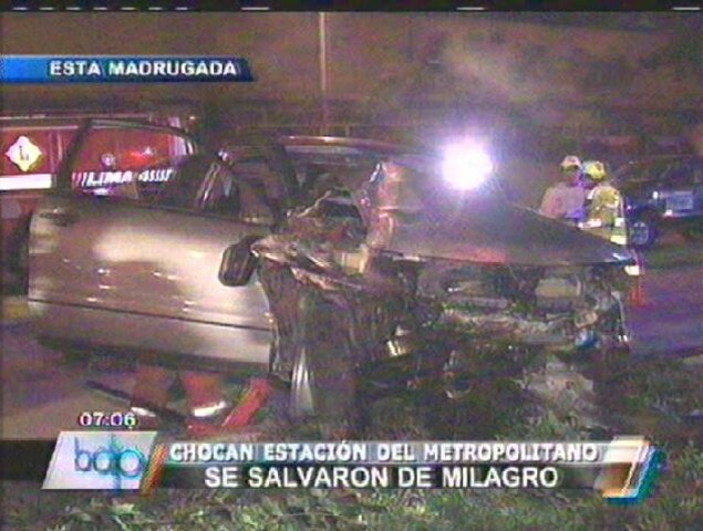 Está madrugada, un moderno vehículo colisionó contra la estación de Canaval y Moreyra del Metropolitano dejando dos heridos identificados como José Antonio Olchese Cavero y Luis Mariano Gonzáles Benavides. Según los testigos, la camioneta iba gran velocidad y al tratar de evitar un auto, el chofer realizó una mala maniobra que hizo que se estrelle contra la mencionada estación.