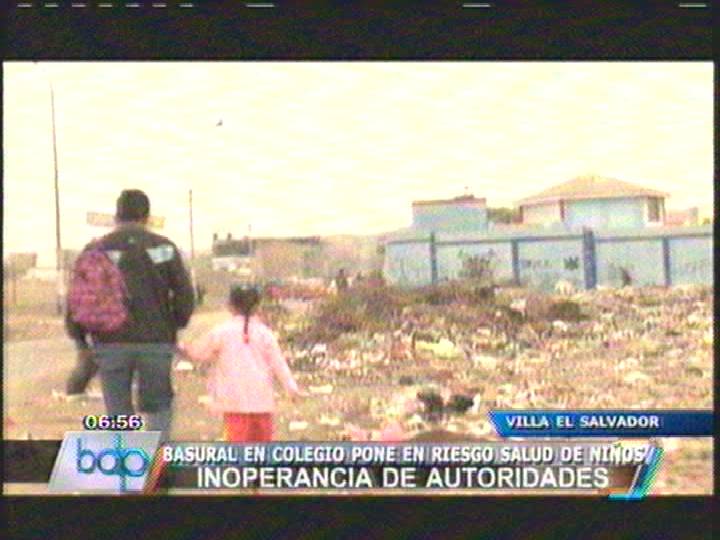 La salud de cientos de niños está en riesgo por un gigantesco basural ubicado nada menos que alrededor de un colegio de Villa el Salvador. Las autoridades no hacen nada al respecto y los desperdicios ya han causado infecciones en varios escolares.