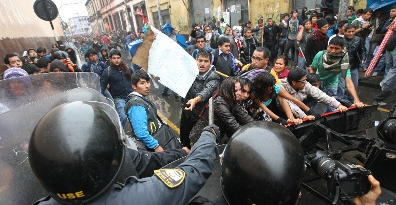 Los siete estudiantes universitarios y los tres miembros de la CGTP detenidos durante los disturbios protagonizados ayer en el Centro de Lima, permanecen retenidos en la séptima región policial ubicada en la Av. España. Los abogados defensores indicaron que las 10 personas capturadas en las protestas realizadas contra la ley SERVIR y la ley universitaria se mantendrían en las instalaciones de la institución policial hasta el mediodía. Por ahora continúan a la espera del juez del dieciséis juzgado penal para que realice las diligencias respectivas.