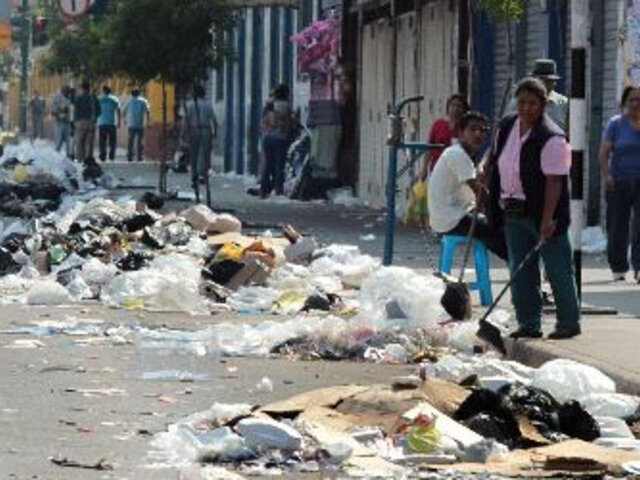 Trabajadores de limpieza pública regaron basura en calles de Lima por protesta