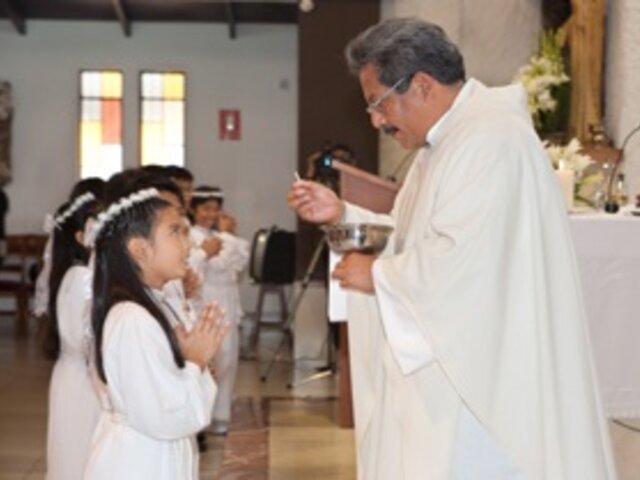 En una hermosa jornada, decenas de estudiantes del colegio San Ignacio de Recalde School, ubicado en San Borja, festejaron la importante ceremonia que marca el primer acercamiento a Cristo. Los menores acompañados de sus padres y maestros se mostraron muy emocionados por formar parte del ritual en el que los niños entablan una fuerte relación con el más fiel de los amigos y su guía de vida. Algunos de los niños indicaron que para ellos es muy importante porque reciben a Cristo en su corazón y permanecerá con ellos para siempre. Por su parte, los padres de familia, indicaron que están muy felices porque la fe de sus hijos se mantiene y crezca.
