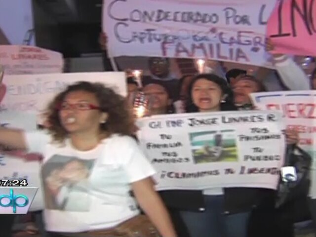 Por segundo día consecutivos, los parientes y allegados del coronel PNP Jorge Linares realizaron una vigilia frente a la sede de la Dirincri exigiendo la liberación del oficial.