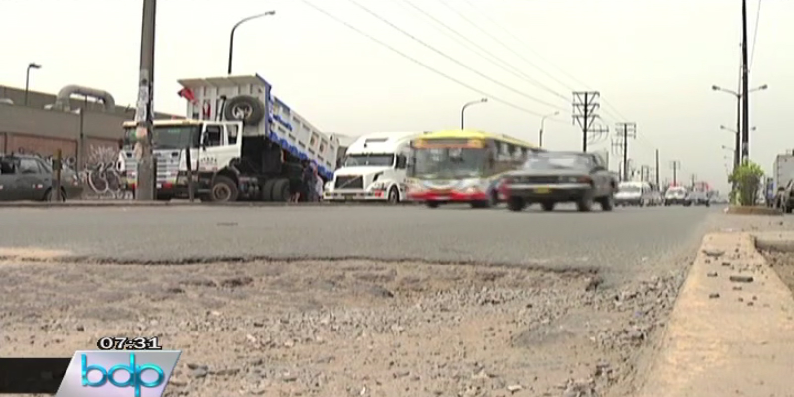 Denuncian caos vehicular y baches en avenida de acceso al Mercado Santa Anita