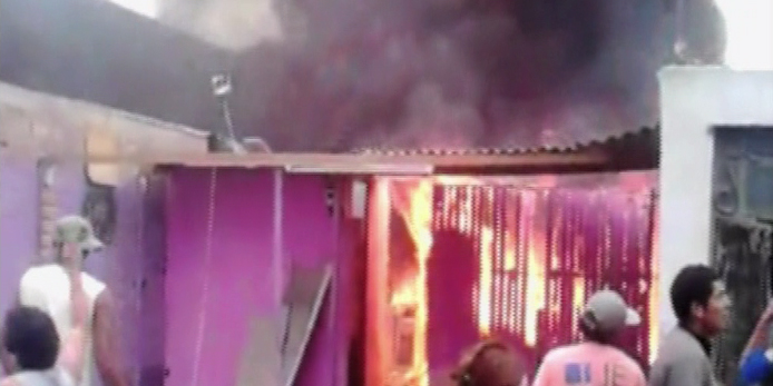 Al menos 10 unidades de bomberos se necesitaron para poder controlar el incendio que se producía en el AAHH Indoamérica de Chorrillos. Al parecer las llamas se iniciaron en un almacén de reciclaje.