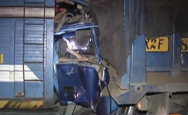 Aparatoso choque entre camión y furgoneta dejó un herido en SJM