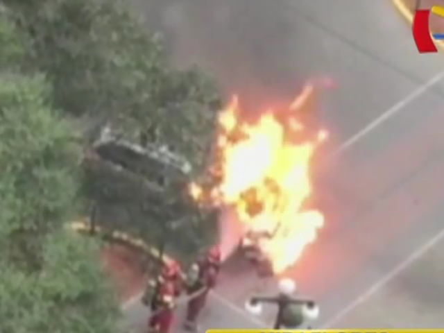 Miraflores: vehículo se incendia en plena av. Pardo cerca a embajada de Brasil
