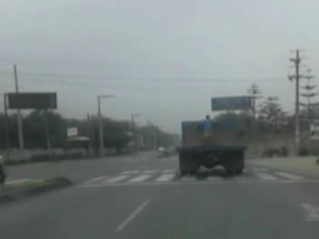 Una persona registró cómo un irresponsable hombre se traslada en la tolva descubierta de un camión en la Carretera Central, en el distrito de Chosica.