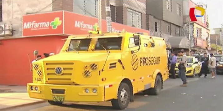Tres hampones asaltaron a dos agentes de la empresa de caudales Prosegur, cuando realizaban el retiro del dinero de un cajero en una botica de San Juan de Miraflores.
