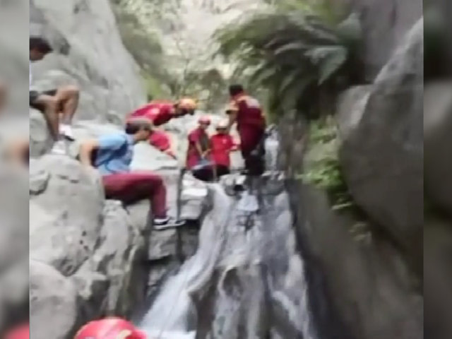Bomberos rescataron un turista que tras una mala maniobra y perder el equilibrio, resbaló y cayó de una catarata de treinta metros de altura, en el distrito de Surco, provincia de Matucana, en Huarochirí.