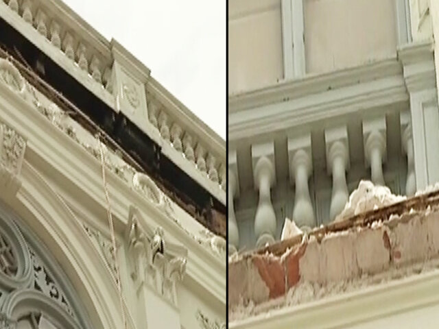 La humedad y antigüedad de la estructura, habrían originado el desplome. Autoridades cercaron el lugar como medida de seguridad, ante el riesgo de que continúe cayendo parte de la cornisa.