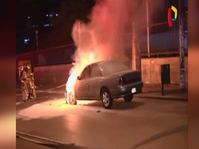 Esta madrugada, un auto se incendió en plena vía de la cuadra 13 de la avenida Arenales, en el Cercado de Lima.