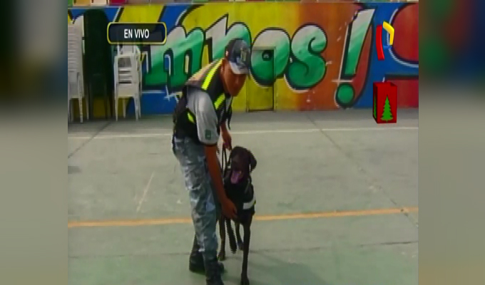 “Hércules” fue entrenado en la detección de pólvora y pirotécnicos. Actualmente acompaña al personal de Fiscalización y Control Urbano en los operativos contra la venta y comercialización de pirotécnicos en los mercados y galerías del distrito.