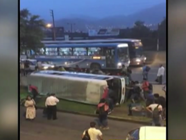 En las imágenes enviadas por un usuario al WhatsApp de Panamericana Televisión, se observa a la unidad de transporte volcada en la intersección de esta importante arteria con la avenida Globo Terráqueo. En un primer momento transeúntes auxiliaron a las víctimas que quedaron dentro del autobús tras la aparatosa volcadura.