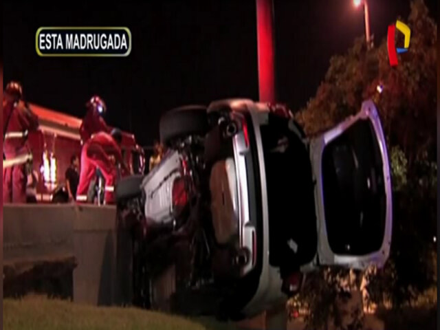 Mujer se habría quedado dormida al volante, originando que pierda el control y termine volcando su moderno vehículo cerca del Trebol de Monterrico.