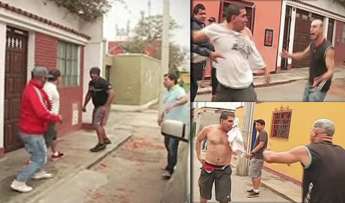 En las afueras del predio, en plena vía pública se enfrentaron a golpes a plena vista de los asustados vecinos. Por su parte, Carlos Burgos afirmó que su familia vive hace 50 años en la mencionada casa y que la familia Navarrete ingresó violentamente para hacer destrozos con la intensión de desalojarlos. Personal de la Policía y Serenazgo tuvo que hacerse presente para apaciguar los ánimos de ambos bandos.