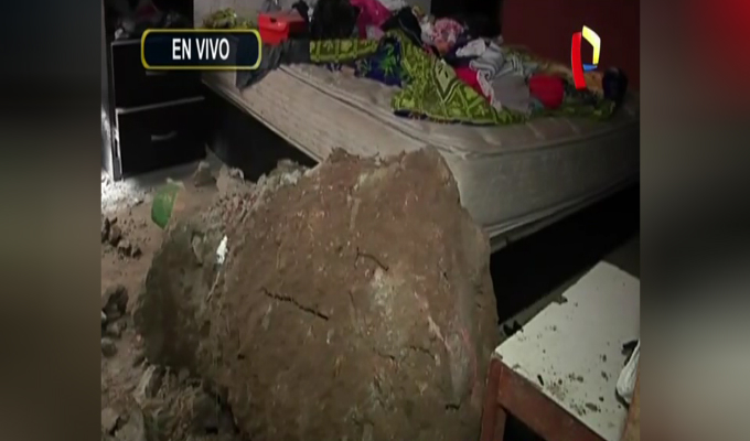 SMP: enorme roca cae sobre precaria vivienda y familia se salva de milagro