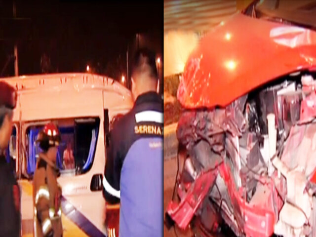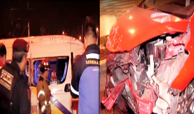 En horas de la madrugada, en la avenida Angamos Este, una unidad de trasporte público impactó aparatosamente contra un vehículo particular, dejando 10 personas heridas.