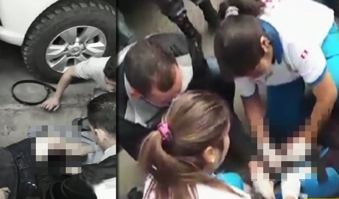 En las imágenes captadas por un testigo del hecho, se observa al herido identificado como Roger Jesús Arévalo, luego de quedar gravemente herido tras ser baleado por los hampones que intentaron robarle su moderna camioneta.