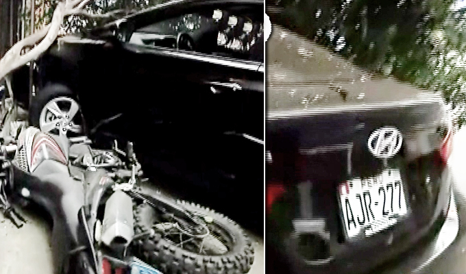 Según testigos cerca de las cuatro de la mañana, una pareja que iba abordo de un auto color negro de placa AJR 277, que transitaban a excesiva velocidad se estrelló aparatosamente contra la fachada de la vivienda, llevándose en el impacto a un árbol y una motocicleta que permanece en el lugar del accidente debajo del vehículo.
