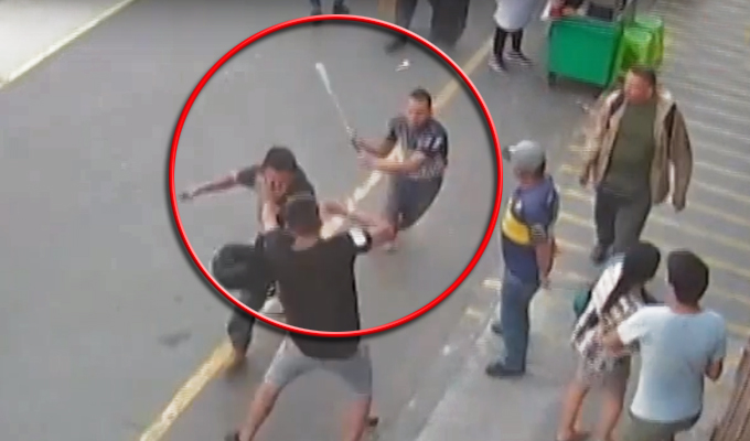 En el Cercado de Lima, una cámara de seguridad captó el momento cuando un sujeto golpea sin ninguna contemplación a un hombre en la cabeza con un bate de béisbol y se inició una batalla campal en medio de una concurrida calle ubicada en la cuadra 05 del jirón Ayacucho. Como se observa en las imágenes Isaac Bulnes Cruz quien trabaja como vendedor en la zona, esperaba a su hermana cuando de pronto su agresor lo atacó brutalmente. Junto al agredido estaban algunas personas quienes también lo atacaron y los familiares de la víctima al notar este hecho salieron en su defensa.