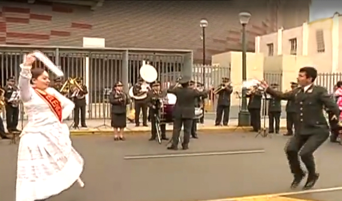 Un equipo de Buenos Días Perú llegó hasta las afueras del Estadio Nacional donde la banda y elenco de danzas de la Policía Nacional del Perú rinden un homenaje a la selección peruana. Al ritmo de una marinera norteña los agentes expresaron su apoyo a la ‘bicolor’.