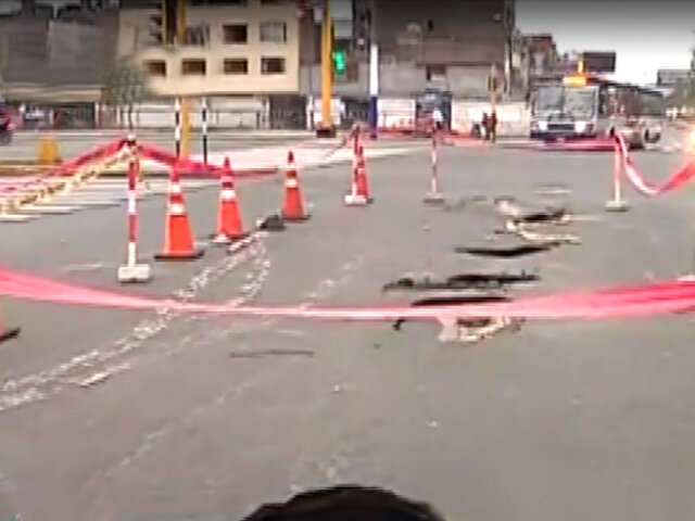 Debido a que la pista se encuentra cercada, solo por un carril están circulando vehículos de transporte público, particulares y hasta buses del Corredor. Cabe resaltar que existe el riesgo de que las grietas sigan cediendo y ocurra una desgracia.