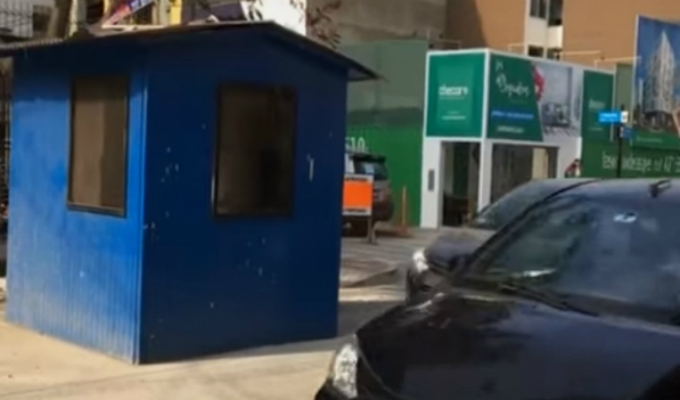 Un equipo de Buenos Días Perú llegó hasta el cruce de las calles Enrique Villar con Montero Rosas, donde corroboró que una caseta de vigilancia se encuentra instalada prácticamente en medio de la pista e impide el libre tránsito de vehículos.