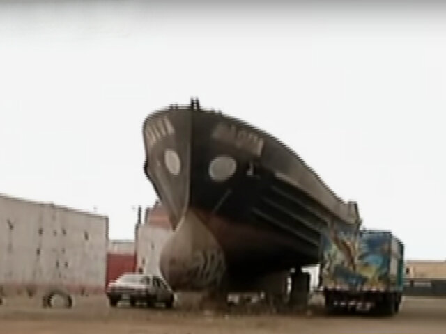 Un serio peligro para los vecinos. Tres enormes buques que pesan aproximadamente 180 toneladas fueron abandonados en una calle de Ventanilla. Las embarcaciones se encuentran sostenidas por improvisados bloques de cemento y tablas de madera.