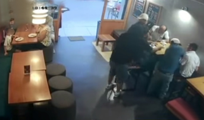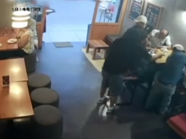 Como se observan en las imágenes, los sujetos sujetos ingresan raudamente al lugar y con pistola en mano amenazan a los comensales y empiezan a quitarles sus pertenencias. Una familia que se encontraba en la mesa aledaña hace que sus hijos se escondan en el piso para evitar que resulten heridos.
