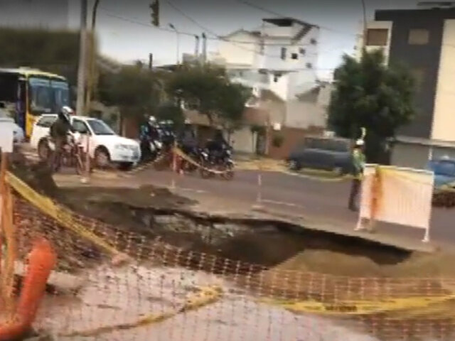 Buenos Días Perú llegó hasta el lugar y corroboró que en el cruce de la avenida Villarán con Tomás Marsano se ha formado un congestionamiento, debido al enorme forado en medio de la vía que realizaron los trabajadores de Sedapal.