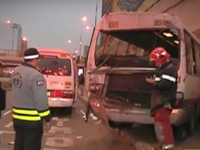 Mientras la Gerencia de Transporte Urbano del Municipio de Lima, parece tomarse todo el tiempo en verificar en su base de datos, la larga lista de accidentes protagonizados por cada cúster de “Los Chosicanos”, el número de muertos y heridos, ocasionados por estos irresponsables conductores al volante, parece seguir aumentando día tras día. Como se puede observar en las imágenes captadas por cámaras de seguridad, una cúster de la linea conocida como “El Chosicano”, intentó adelantar a otra unidad que le lleva ventaja ingresando al otro carril de la Vía Expresa de Grau, cuando otro vehículo, también de esta flota no se quedó atrás y avanzó a toda velocidad, y chocó contra la parte posterior de la cúster, que terminó estrellándose contra la pared del by pass.