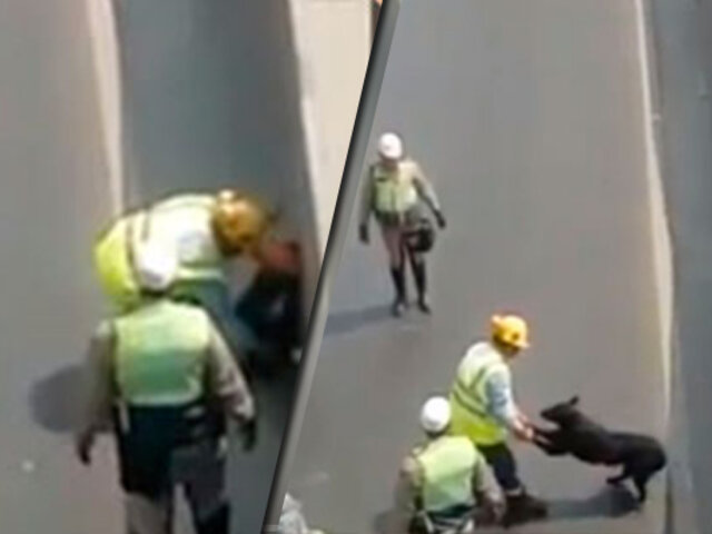 Agentes de la Policía de Tránsito y operarios de Rutas de Lima lograron rescatar al can asustado.