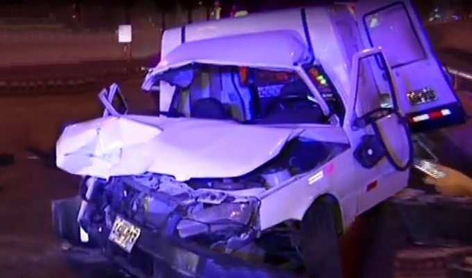 Esta madrugada, una furgoneta sufrió un violento accidente al chocar contra un muro en el cruce de las avenidas Javier Prado con Guardia Civil, en el distrito de San Borja. Según vecinos, los ocupantes del vehículo se encontraban en estado de ebriedad.