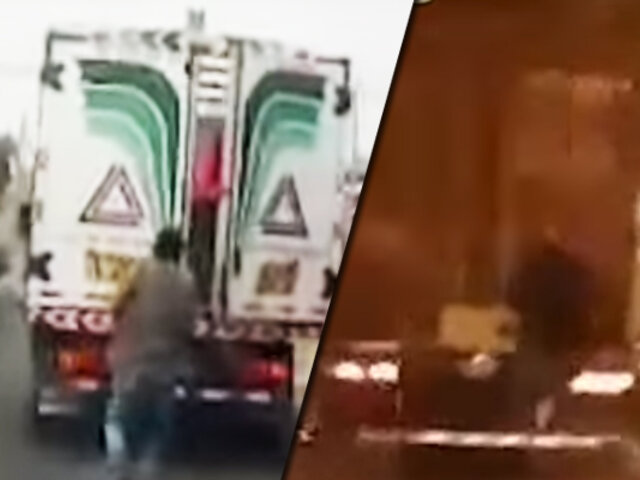 Avezados integrantes de bandas de ladrones de camiones en marcha hacen de las suyas en en el Callao. Estos ladrones tientan a la muerte para apoderarse de la carga de los contenedores que salen del primer puerto realizando acrobacias que parece de película. En la avenida Néstor Gambeta, dos hombres, fueron captados parados temerariamente sobre la tolva de un trailer en marcha pues su objetivo era llevarse la carga y los delincuentes, recogen la mercadería y uno a uno lanzan los paquetes sobre otro vehículo que avanzaba detrás del camión.