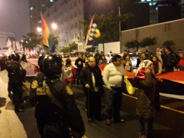 Los manifestantes empujaron, patearon, e intentaron agredir a las autoridades, con la finalidad de continuar su recorrido al Congreso de la República, en el desarrollo de la tercera marcha contra el parlamento que no contaba con autorización.