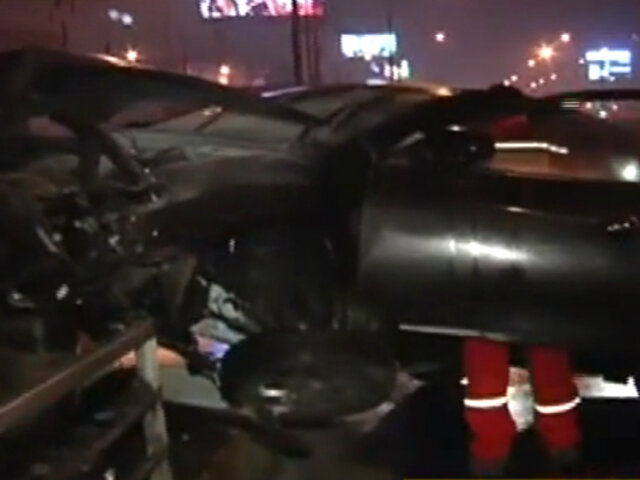 Un equipo de Buenos Días Perú llegó hasta el lugar y corroboró que el auto negro de placa de rodaje A5R-365 quedó con la parte delantera destrozada. Además el vehículo se encontraba sobre el cerco de metal de la vía Expresa.
